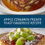 A delicious Apple Cinnamon French Toast Casserole featuring sweet brioche bread soaked in a creamy cinnamon-spiced custard, layered with tender diced apples, baked to golden perfection, and topped with powdered sugar and maple syrup. Perfect for a cozy breakfast or brunch gathering.