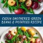 This Cajun Smothered Green Beans & Potatoes recipe is a hearty and flavorful dish featuring tender green beans and baby red potatoes cooked with crispy bacon, aromatic onions, garlic, and a punch of Cajun seasoning. Slow-simmered in chicken broth, this comforting Southern-inspired side combines savory spices and fresh ingredients for a perfect accompaniment to any meal.