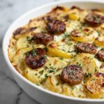 This hearty Cheese Potato and Smoked Sausage Casserole blends tender diced potatoes and savory smoked sausage with a rich, creamy cheese sauce. Topped with melted sharp cheddar and Parmesan cheeses and baked to golden perfection, this comforting American main course is perfect for an easy weeknight dinner or satisfying family meal.