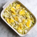A comforting and cheesy cabbage casserole that features sautéed green cabbage and Vidalia onions baked with a creamy blend of soup and mayonnaise, topped with melted butter and sharp cheddar cheese for a golden, bubbly finish. Perfect as a hearty side or light main dish, this recipe combines simple ingredients for a flavorful and satisfying casserole.