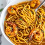 This recipe is best enjoyed fresh, but if you need to freeze leftovers, separate the shrimp and pasta into a freezer-safe container, leaving out delicate garnishes. Freeze for up to one month and thaw overnight in the fridge before reheating gently.