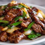 This Chinese Beef and Onion Stir-Fry is a quick and delicious meal featuring tender slices of flank steak cooked with caramelized onions and a savory, slightly sweet sauce. Perfectly balanced with soy, oyster, hoisin, and a touch of rice vinegar, it’s an easy dish to whip up on a weeknight and serve over steamed rice for a satisfying dinner.