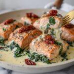 Toss the baby spinach right into the sauce, letting it wilt down just enough without losing its bright color and fresh taste. Return those golden salmon fillets to the pan and spoon the sumptuous sauce all over. Give it just a minute or two to marry the flavors together fully and warm through. You’ll see the sauce cling to the fish, turning each bite into a decadent experience.