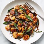 This Crisp Gnocchi and Roast Pumpkin in Brown Butter recipe features tender homemade potato gnocchi pan-fried to golden crispiness, complemented by sweet roasted pumpkin and aromatic browned sage butter. Finished with a drizzle of balsamic glaze and a sprinkle of Parmesan, it’s a comforting yet elegant dish that balances textures and flavors beautifully.