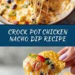 This Crock Pot Chicken Nacho Dip is a warm, creamy, and flavorful appetizer perfect for parties or casual gatherings. Made with shredded chicken, a blend of cheeses, black beans, and taco seasoning, it cooks low and slow in a crock pot for a melty, irresistible dip to serve with tortilla chips or nachos.