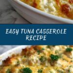 This easy tuna casserole is a comforting, creamy, and cheesy baked pasta dish perfect for a quick family dinner. Featuring tender elbow macaroni or egg noodles mixed with tuna, peas, and a savory mushroom soup sauce, topped with a crispy potato chip or breadcrumb crust, it’s an effortless crowd-pleaser that comes together in just 35 minutes.