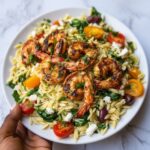 This Greek Shrimp Orzo is a vibrant and flavorful dish combining succulent shrimp, tender orzo pasta, juicy cherry tomatoes, briny Kalamata olives, and creamy feta cheese. Enhanced with fresh lemon juice and herbs, it offers a delightful Mediterranean-inspired meal ready in just 25 minutes, perfect for a quick weeknight dinner.
