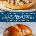 How to Serve Grilled Ribeye Steak Sandwich with Caramelized Onions, Mushrooms, and Roasted Red Pepper Aioli Recipe