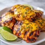 Once the cheese is melted, remove the chicken from the grill. Garnish with fresh minced cilantro for a splash of color and extra freshness. Serve with lime wedges on the side to squeeze over, enhancing every bite.