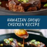 This Hawaiian Shoyu Chicken recipe features tender, bone-in chicken thighs cooked to crispy perfection with a flavorful glaze made from soy sauce, brown sugar, ginger, and garlic. The dish is simmered to juicy tenderness and finished with a thickened savory sauce, offering a sweet and salty taste reminiscent of classic Hawaiian comfort food.
