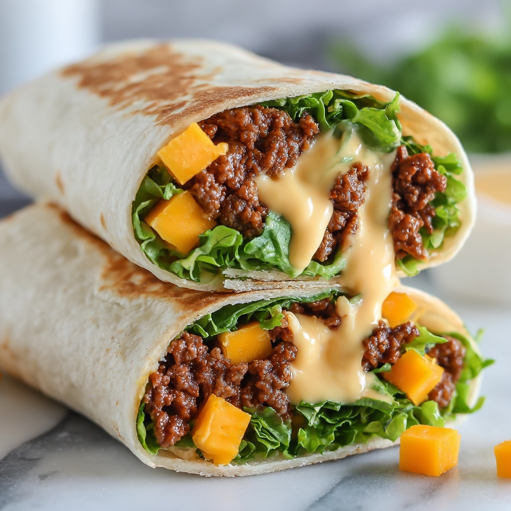 These Homemade Big Mac Wraps are a delicious and easy twist on the classic Big Mac burger, wrapped neatly in a soft flour tortilla. Featuring seasoned ground beef, a crunchy blend of iceberg lettuce, sharp cheddar cheese, tangy pickles, and a creamy special sauce mix, these wraps deliver all the iconic flavors in a convenient handheld form. Ready in just 30 minutes, they make a perfect quick lunch or dinner for 4 servings.