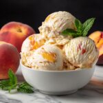 Serving your homemade peach ice cream doesn’t have to be plain. Fresh mint leaves add a refreshing contrast and a pop of green that looks gorgeous. Alternatively, sprinkle a few chopped nuts like toasted pecans or almonds for a satisfying crunch that pairs beautifully with the creamy texture.