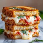 A quick and easy twist on classic chicken parmesan, this Lazy Chicken Parmesan Grilled Cheese combines crispy baked breaded chicken patties, melted provolone cheese, and flavorful marinara sauce between buttery grilled Italian bread slices. Ready in just 35 minutes, it’s a comforting, savory sandwich perfect for a satisfying lunch or dinner.