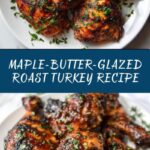 This Maple-Butter-Glazed Turkey recipe features a perfectly roasted turkey with a flavorful glaze made from pure maple syrup, butter, and savory seasonings. The turkey is broken down into parts for even cooking and seasoned with a blend of kosher salt, garlic powder, brown sugar, and cracked black pepper. Roasted in the oven and basted repeatedly with a rich maple butter glaze, it delivers breathtaking balance of sweet and savory, making it an ideal centerpiece for festive gatherings.