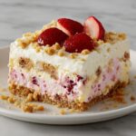 This no-bake strawberry crunch cheesecake is a delightful and easy-to-make dessert featuring a smooth and creamy cream cheese filling layered on a buttery graham cracker crust, topped with a luscious cooked strawberry sauce and a crunchy Golden Oreo topping. Perfect for warm weather or when you want an impressive dessert without turning on the oven.