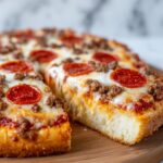 The Pizza Burger Pie combines the best of two comfort foods into one delicious dish. Ground beef seasoned with Italian herbs and pizza sauce is baked inside a flaky biscuit crust, topped with melted mozzarella, pepperoni, and Parmesan cheese. Perfect for a family-friendly main course, this hearty casserole offers a fun twist on traditional pizza and burgers.