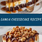Samoa Cheesecake is a decadent dessert inspired by the beloved Girl Scout Samoa cookies. It features a rich chocolate cookie crust, creamy caramel-infused cheesecake filling, and a luscious topping of toasted coconut, caramel drizzle, and melted chocolate. This cheesecake combines layers of flavor and texture to create a crowd-pleasing treat perfect for any special occasion.