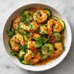 A refreshing and flavorful Shrimp and Cucumber Salad combining tender cooked shrimp, crisp cucumber, and a zesty Asian-inspired dressing made with soy sauce, rice vinegar, and sesame oil, perfect for a light and healthy meal or appetizer.