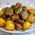 - Finish and Serve: Once cooked, gently stir the beef and potatoes to distribute the garlic butter and seasonings. Garnish with freshly chopped parsley and serve the dish warm for a hearty meal.