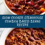 This Slow Cooker Steakhouse Cowboy Baked Beans recipe is a hearty and flavorful side dish featuring a savory blend of ground beef, crispy bacon, and a variety of beans simmered with a rich barbecue sauce mixture. Perfect for potlucks or a comforting family meal, this easy slow cooker recipe infuses classic steakhouse flavors into tender baked beans, delivering a satisfying and smoky taste with minimal prep.