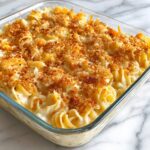 This Southern Macaroni and Cheese Casserole is a comforting, creamy baked pasta dish featuring elbow macaroni coated in a rich cheese sauce made from sharp cheddar, milk, and cream. Topped with Parmesan and optional crushed Ritz crackers for a crispy crust, this classic casserole is perfect for family dinners or holiday gatherings.