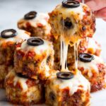 Spooky Spaghetti and Cheese Stuffed Meatballs offer a fun and festive twist on classic pasta and meatballs. These oven-baked meatballs are stuffed with gooey string cheese and topped with black olive slices to resemble eerie eyeballs, served atop a comforting bed of perfectly sauced spaghetti. Ideal for a Halloween-themed dinner, this recipe combines simple ingredients with playful presentation for a delicious and visually engaging meal.