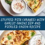 This Stuffed Pita (Arayes) with Garlic-Tahini Dip and Pickled Onion Recipe pairs beautifully with a simple cucumber and tomato salad dressed in lemon juice and olive oil, or a light tabbouleh for a refreshing contrast. A side of crispy fries or roasted vegetables also complements the hearty pita pockets nicely, turning it into a complete and satisfying meal.