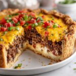 This Taco Pie recipe is a delicious and easy-to-make savory pie that combines seasoned ground beef with a flaky crescent dough crust, melted cheddar cheese, and optional toppings like sour cream, salsa, and fresh herbs. Perfect for a family dinner, this dish brings classic taco flavors into a comforting pie form that’s sure to please.