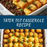 If you are craving a comforting, nostalgic dish that brings both crispy texture and creamy goodness in every bite, then this Tater Tot Casserole Recipe is your new best friend. Combining savory ground beef with velvety mushroom soup, topped with golden tater tots and melted Cheddar cheese, this casserole strikes the perfect balance of easy, hearty, and utterly satisfying. Whether it’s a busy weeknight or a casual family dinner, this dish promises to deliver warm smiles and full bellies with minimal fuss.