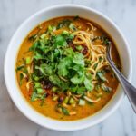 Finish your Thai Red Curry Noodle Soup Recipe by stirring in fresh lime juice and chopped cilantro. Taste your soup to see if it needs more lime or salt. These fresh additions brighten the dish, introducing a zesty contrast that lifts all those deep, warm flavors to the next level.